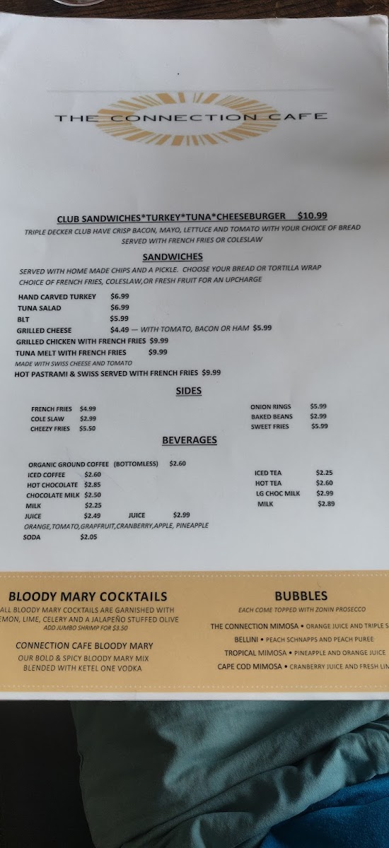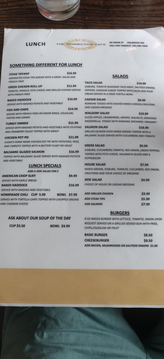 Welcome to The Connection Cafe Menu, where each dish is crafted with care and designed to connect you to the flavors that make dining out an unforgettable experience. Located at 40 Union St in Holbrook, MA, this cozy spot offers a blend of hearty comfort food and fresh, seasonal ingredients. Whether you're in the mood for a savory breakfast to kickstart your day or a satisfying lunch to fuel you through the afternoon, their menu has something for everyone. With a variety of sandwiches, salads, and signature entrees, you can enjoy both classic favorites and exciting new flavors, all served with a warm, welcoming atmosphere. Don't forget to check out their sweet treats for a perfect finish to your meal.